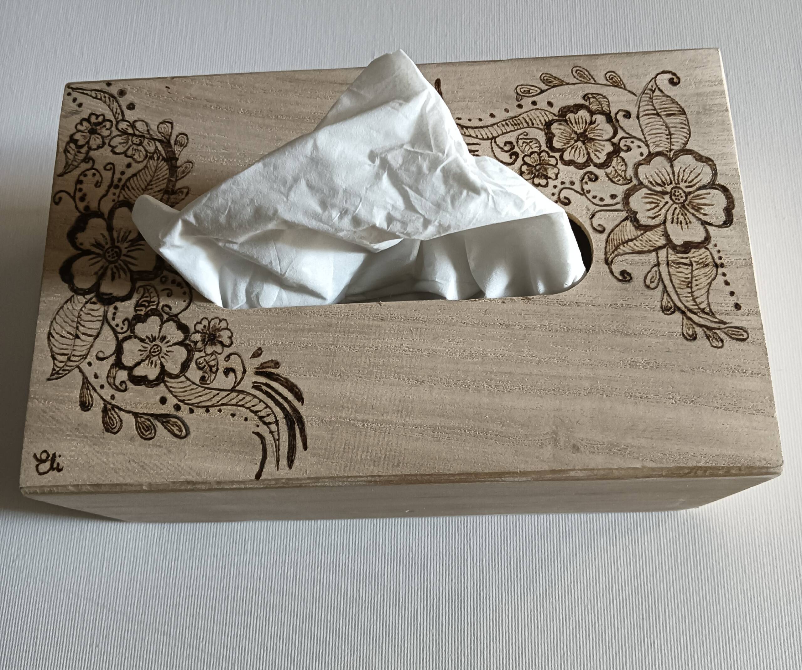 Scatola porta fazzoletti in legno 19 x 12 x 9 disegno motivo floreale personalizzabile