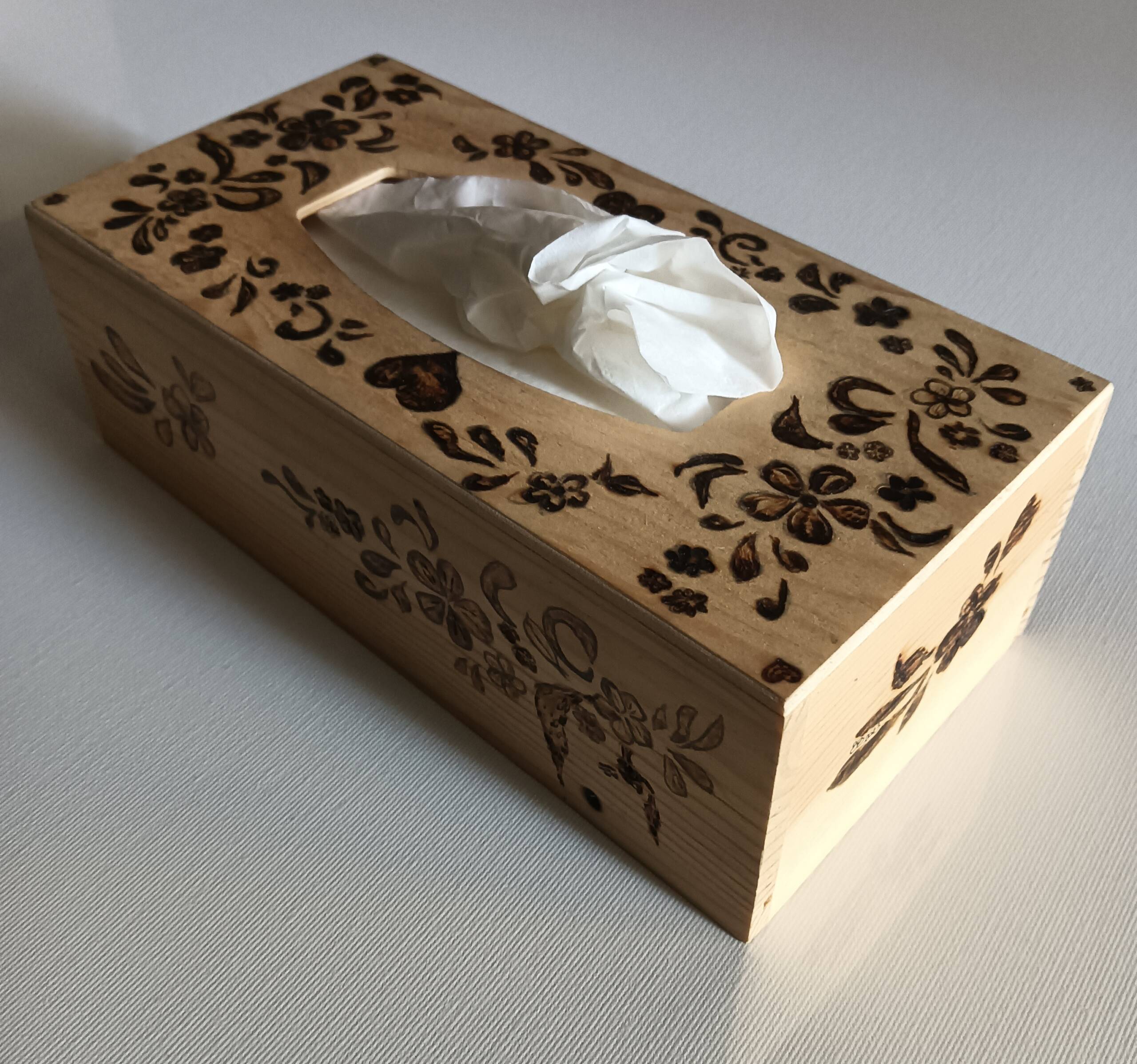 Scatola porta fazzoletti in legno 19 x 12 x 9 disegno motivo floreale personalizzabile