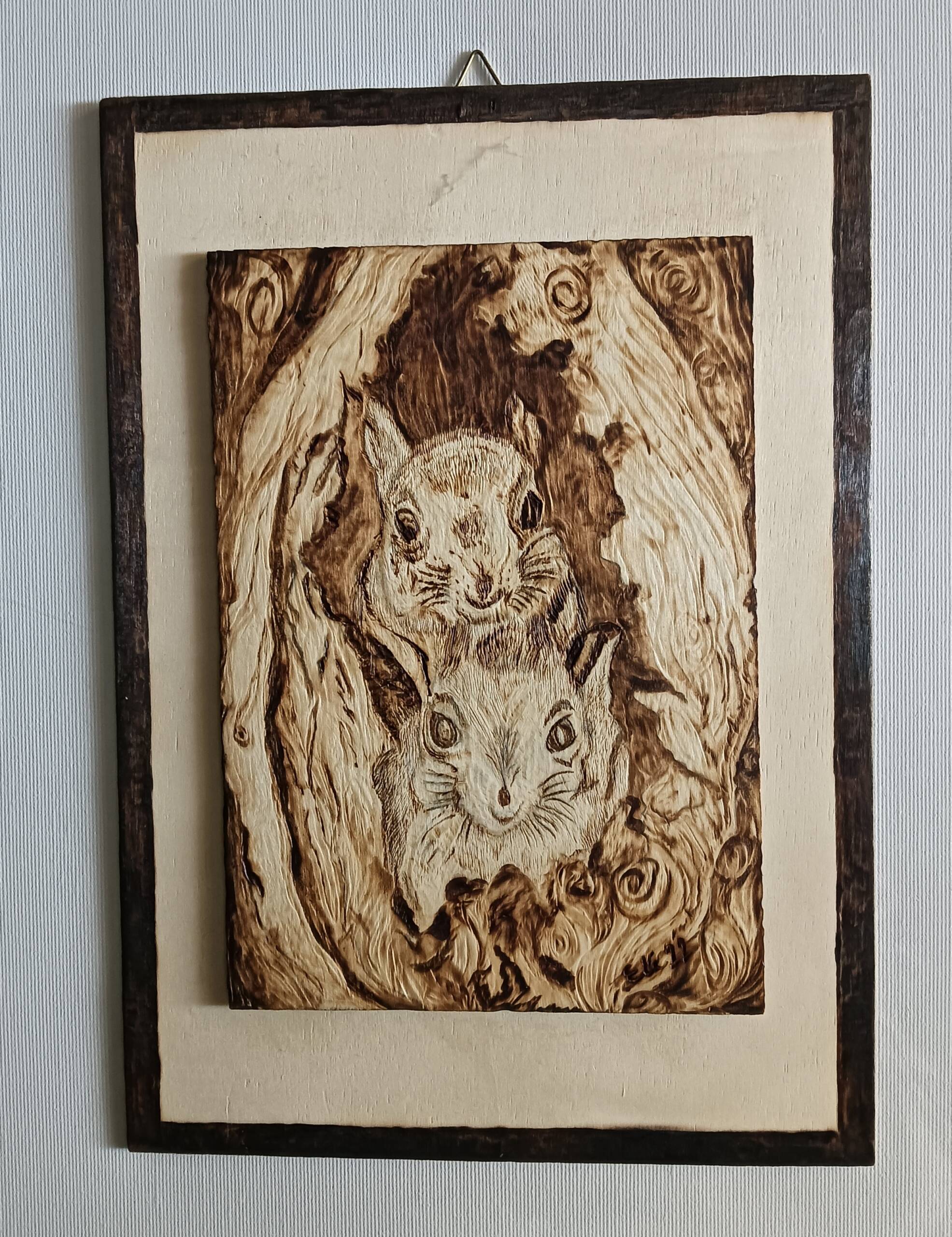 Aggiungi un tocco di vivacità e natura alla tua casa con il nostro quadro di legno di pioppo pirografato, che ritrae adorabili scoiattoli in un ambiente boschivo. Realizzato con maestria utilizzando il pirografo, ogni dettaglio cattura il movimento giocoso e l’energia degli scoiattoli. Perfetto per gli amanti della natura e dell’arte, questo quadro aggiunge un tocco di calore e fascino rustico alla tua decorazione. Aggiungi un elemento distintivo alla tua casa con il quadro pirografato di Arte del Fuoco, dove l’arte incontra la bellezza naturale.